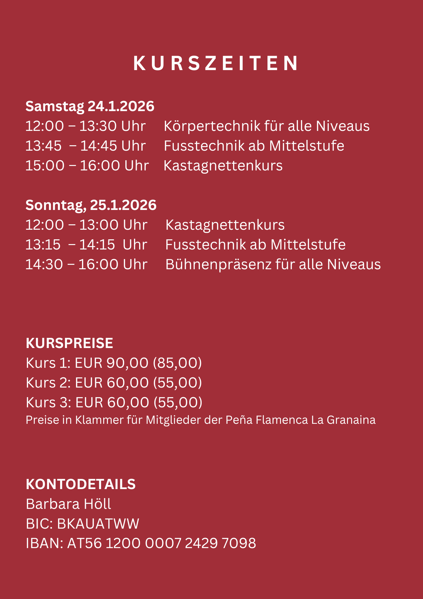 Preise in Klammer für Mitglieder der Peña Flamenca La Granaina